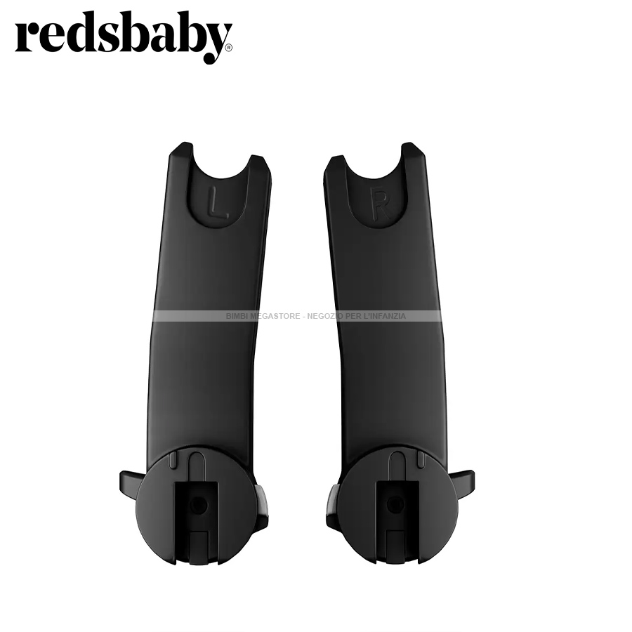 Adattatori per passeggino con funzione memoria che permettono lo sgancio della navicella con una sola mano.