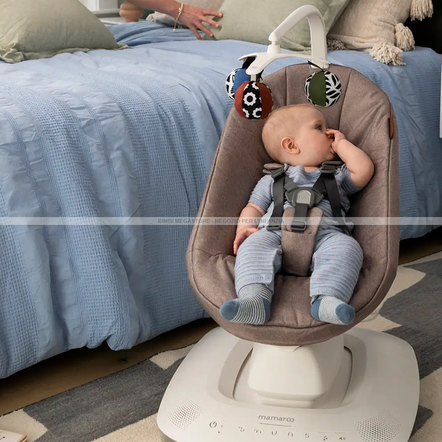 Connettività intelligente: controlla la Mamaroo via app (Bluetooth), timer, preset, controllo remoto e compatibilità con Google Home e Alexa.